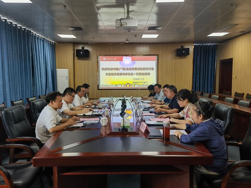 2024年7月5日,中国(广西)自由贸易试验区钦州港片区经济发展局局长李松云、协理局长陈冲等一行4人到我院调研交流。我校党委常委、副校长,钦州发展研究院院长闫松银出席并主持座谈会。